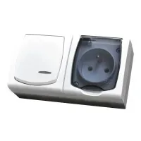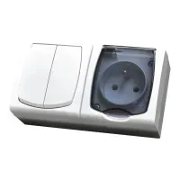 MADERA Zestaw Łącznik dwugrupowy świecznikowy + Gniazdo pojedyncze wieczko przezroczyste, kolor: BIAŁY, 10AX/16A/250~, IP-44 zaciski gwintowe