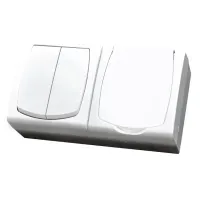 MADERA Zestaw Łącznik dwugrupowy świecznikowy + Gniazdo pojedyncze wieczko w kolorze wyrobu, kolor: BIAŁY, 10AX/16A/250~, IP-44 zaciski gwintowe