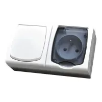 MADERA Zestaw Łącznik pojedynczy + Gniazdo pojedyncze wieczko przezroczyste, kolor: BIAŁY, 10AX/16A/250~, IP-44 zaciski gwintowe