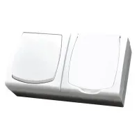 MADERA Zestaw Łącznik pojedynczy + Gniazdo pojedyncze wieczko w kolorze wyrobu, kolor: BIAŁY, 10AX/16A/250~, IP-44 zaciski gwintowe