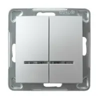 IMPRESJA Łącznik dwugrupowy świecznikowy z podświetleniem niebieskim, kolor: SREBRO, 16AX250~, IP-20, zaciski bezgwintowe