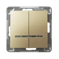 IMPRESJA Łącznik dwugrupowy świecznikowy z podświetleniem niebieskim, kolor: ZŁOTY METALIK, 16AX250~, IP-20, zaciski bezgwintowe