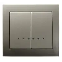 KIER Łącznik dwugrupowy świecznikowy z podświetleniem niebieskim|`, kolor: SATYNA LIGHT, 10AX/250~, IP-20 zaciski gwintowe