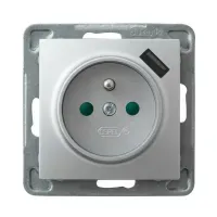 IMPRESJA Gniazdo pojedyncze z uziemieniem z przesłonami torów prądowych, z ładowarką USB, kolor: SREBRO, 16A/230~,USB 5V/2,1A, IP-20, zac.bezgw.