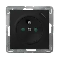 IMPRESJA Gniazdo pojedyncze z uziemieniem z przesłonami torów prądowych, z ładowarką USB, kolor: CZARNY METALIK, 16A/230~,USB 5V/2,1A, IP-20, zac.bezgw.
