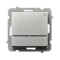 SONATA Łącznik zwierny "dzwonek" z podświetleniem niebieskim, kolor: SREBRO MAT, 10AX/250~, IP-20 zaciski bezgwintowe
