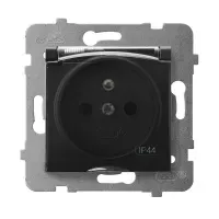 ARIA Gniazdo bryzgoszczelne z uziemieniem IP-44 wieczko przezroczyste, kolor: CZARNY METALIK, 16A 250V~, IP44, zaciski gwintowe