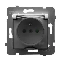 ARIA Gniazdo bryzgoszczelne z uziemieniem IP-44 wieczko przezroczyste, kolor: SZARY MAT, 16A 250V~, IP44, zaciski gwintowe