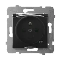 ARIA Gniazdo bryzgoszczelne z uziemieniem IP-44 z przesłonami torów prądowych wieczko przezroczyste, kolor: CZARNY METALIK, 16A 250V~, IP44, zaciski gwintowe