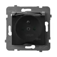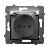 ARIA Gniazdo bryzgoszczelne z uziemieniem IP-44 z przesłonami torów prądowych wieczko przezroczyste, kolor: SZARY MAT, 16A 250V~, IP44, zaciski gwintowe