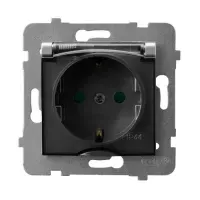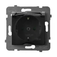 ARIA Gniazdo bryzgoszczelne z uziemieniem schuko IP-44 z przesłonami torów prądowych wieczko przezroczyste, kolor: CZARNY METALIK, 16A 250V~, IP44, zaciski gwintowe