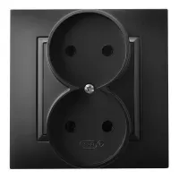 ARIA Gniazdo podwójne kompletne z ramką, kolor: CZARNY METALIK, 16A 250V~, IP20, zaciski gwintowe
