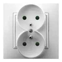ARIA Gniazdo podwójne z uziemieniem z przesłonami torów prądowych, kompletne z ramką, kolor: BIAŁY, 16A 250V~, IP20, zaciski gwintowe