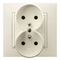 ARIA Gniazdo podwójne z uziemieniem z przesłonami torów prądowych, kompletne z ramką, kolor: ECRU, 16A 250V~, IP20, zaciski gwintowe