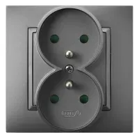 ARIA Gniazdo podwójne z uziemieniem z przesłonami torów prądowych, kompletne z ramką, kolor: SZARY MAT, 16A 250V~, IP20, zaciski gwintowe