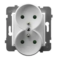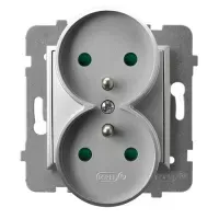ARIA Gniazdo podwójne z uziemieniem z przesłonami torów prądowych, moduł bez ramki, kolor: SREBRO, 16A 250V~, IP20, zaciski gwintowe