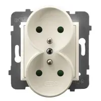 ARIA Gniazdo podwójne z uziemieniem z przesłonami torów prądowych, moduł bez ramki, kolor: ECRU, 16A/250~, IP-20, do ramek linii Prestige