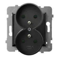 ARIA Gniazdo podwójne z uziemieniem z przesłonami torów prądowych, moduł bez ramki, kolor: CZARNY METALIK, 16A/250~, IP-20, do ramek linii Prestige