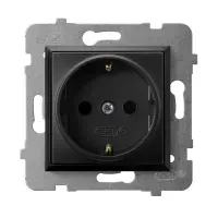 ARIA Gniazdo pojedyncze z uziemieniem schuko z przesłonami torów prądowych, kolor: CZARNY METALIK, 16A 250V~, IP20, zaciski gwintowe