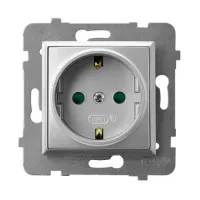 ARIA Gniazdo pojedyncze z uziemieniem schuko z przesłonami torów prądowych, kolor: SREBRO, 16A 250V~, IP20, zaciski gwintowe