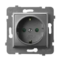 ARIA Gniazdo pojedyncze z uziemieniem schuko z przesłonami torów prądowych, kolor: SZARY MAT, 16A 250V~, IP20, zaciski gwintowe